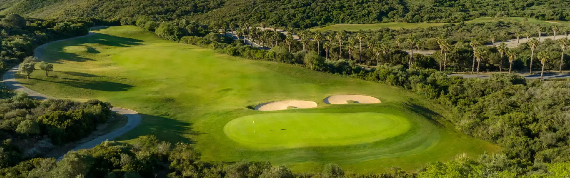Alcaidesa Heathland, consists of 18 holes par 72, designed by the renowned former Ryder Cup player and author of numerous internationally renowned layouts, Dave Thomas. This course offers a variety of natural scenery ranging from the plateau area (holes 1 to 5, 17 and 18) where the course is similar to a heathland, with wide fairways and outstanding views of the Mediterranean, to the valley area, where the holes meander along the valley and incorporate several water hazards. The total distance is: 6,373 m.